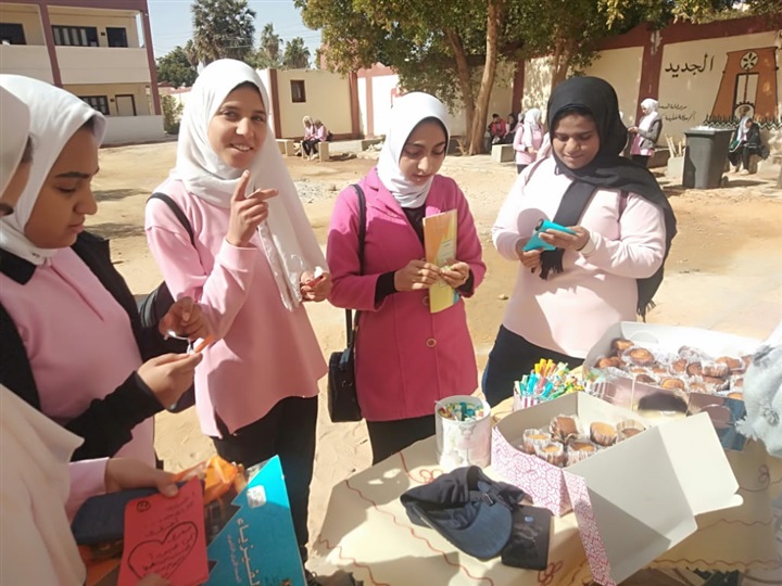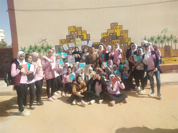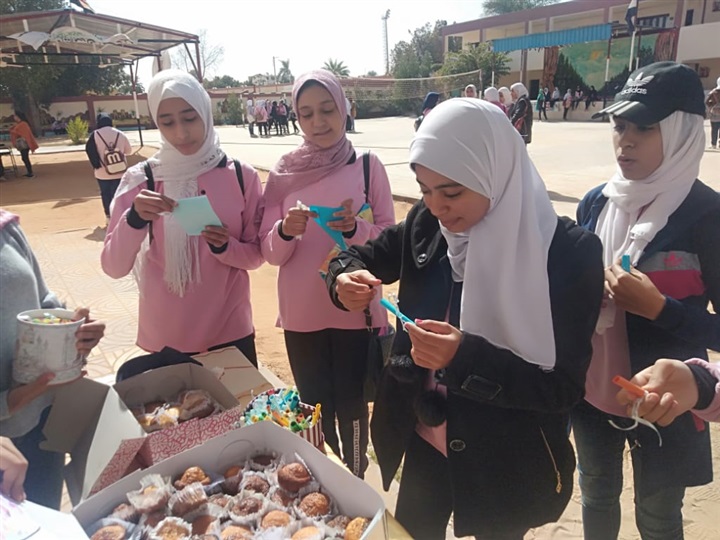 وحرصت على توزيع ١٥٠ قطعة كب كيك مصحوبة برسالة تحفيزية لتشجيع الطالبات على التركيز وعدم الرهبة عند دخول الامتحان وذلك وسط فرحة وسعادة غامرة للطالبات معربات عن تقدريهن للمعلمة وفكرتها والتى لها عظيم الأثر فى نفوسهن للحد من الخوف من الإمتحان.