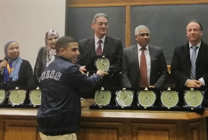 كما قام عميد كلية العلوم، بتكريم فريق (iGEM CU)، واهداهم درع الكلية حيث أعرب المناوي عن خالص اعتزازه وفخره بنتائج الفريق التي ادت الي فوزه بالميدالية البرونزية في المسابقة الدولية للهندسة الوراثية والأحياء التركيبية بالولايات المتحدة الأمريكية، والفائز بروبوت أوبنترونز المعملي بالإضافة إلى مواد كيميائية بمقدار ٤٠٠٠ دولار لإجراء تجارب المشروع الخاص بتحلية المياه عن طريق استخدام تكنولوجيا حيويه صديقه للبيئه وموفرة الطاقة ، كما كرم المناوي فريق (FOTM) الفائز بالمركز الثاني في مسابقة حاضنة أعمال كلية الاقتصاد والعلوم السياسية حيث يتتطرق المشروع لاعادة تدوير المخلفات العضوية الي بدائل اعلاف عن طريق تكنولوجيا حيويه صديقه للبيئة، متمنيا لهم خالص التوفيق والسداد.