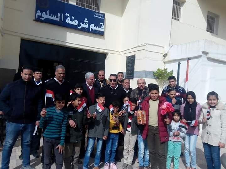 مسيرة لطلاب ومديري المدارس بالسلوم لتهنئة رجال الشرطة بعيدهم