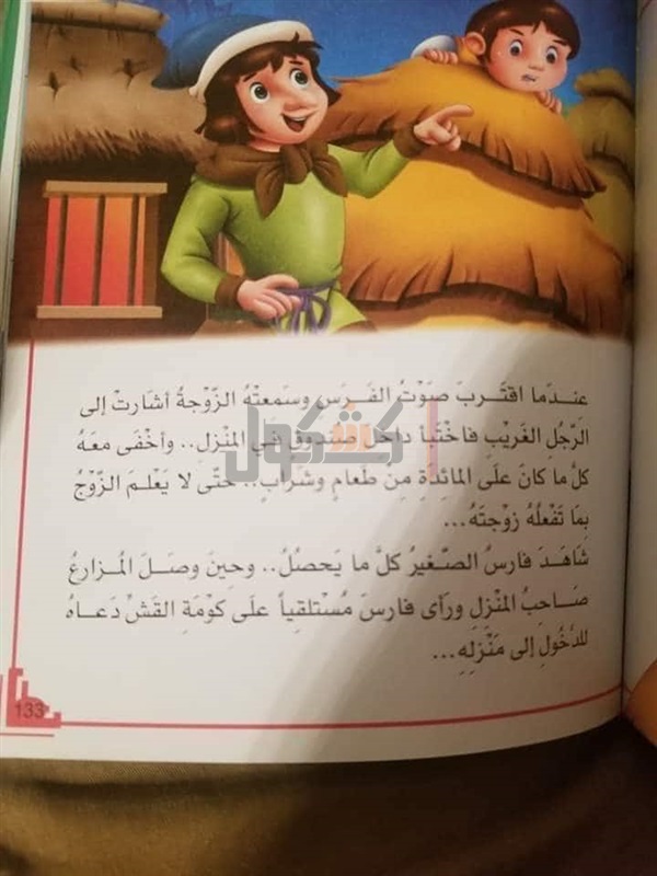 وجاء فى القصة بعض المشاهد مثل "وجد فارس الصغير كومة قش..
