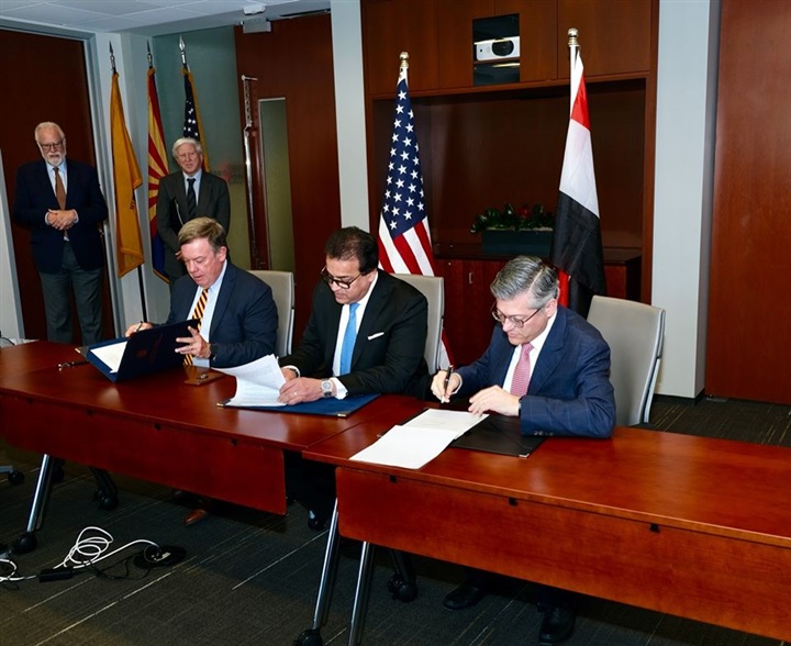 أولاً: توقيع مذكرة تفاهم بين وزارة التعليم العالي وجامعة ولاية أريزونا ومؤسسة سنتانا لإنشاء فرع للجامعة بجامعة الجلالة الأهلية: