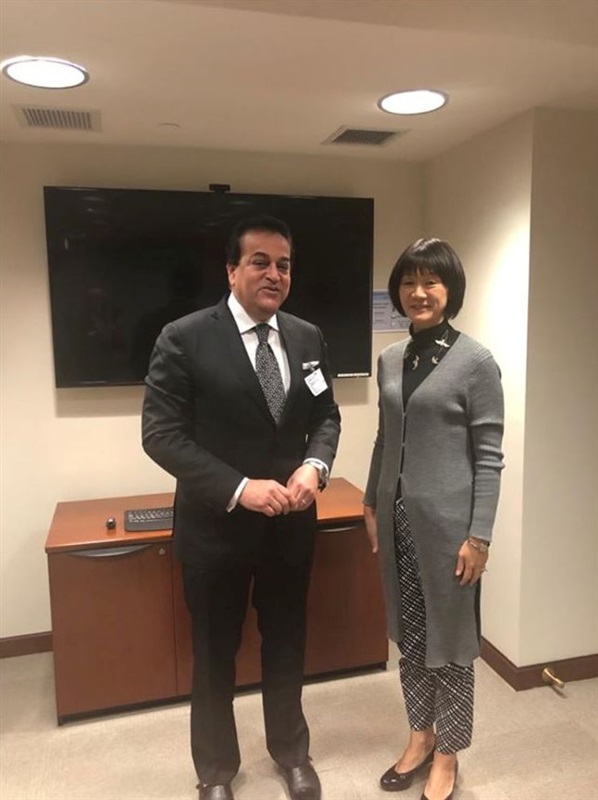 كما التقى الوزير مساعدة وزير الخارجية الأمريكية للشؤون الثقافية والتعليمية بمكتب السفير. ياسر رضا سفير جمهورية مصر العربية لدى الولايات المتحدة الأمريكية، حيث تم مناقشة سبل دعم التعاون بين مصر والولايات المتحدة الأمريكة في مجالات التعليم العالي والبحث العلمي، ودعم إنشاء أفرع لجامعات أمريكية بمصر، ودعم زيادة عدد المبتعثين من الجانبين.