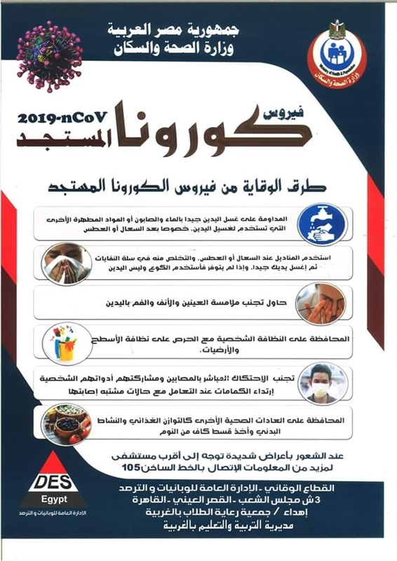 كلف الدكتور طارق رحمي، محافظ الغربية، وناصر حسن، وكيل وزارة التربية والتعليم بالغربية، بتوزيع 20 ألف بوستر للوقاية من الأمراض المعدية والفيروسات والأنفلونزا، مهداة من جمعية رعاية الطلاب، لتوعية الطلاب والمعلمين والمشرفين داخل المدارس بالفيروسات، وكيفية الوقاية منها، والحد من انتشارها.