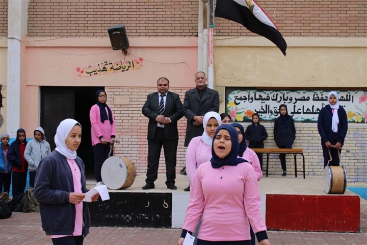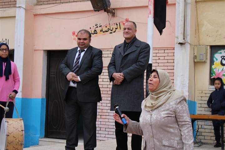 بحضور طابور الصباح في مدرسة فاطمة عنان الابتدائية، والإذاعة المدرسية، كما تفقد الفصول