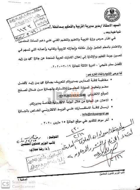 تنبيه هام للمعلمين بشأن مسابقة محمد بن زايد