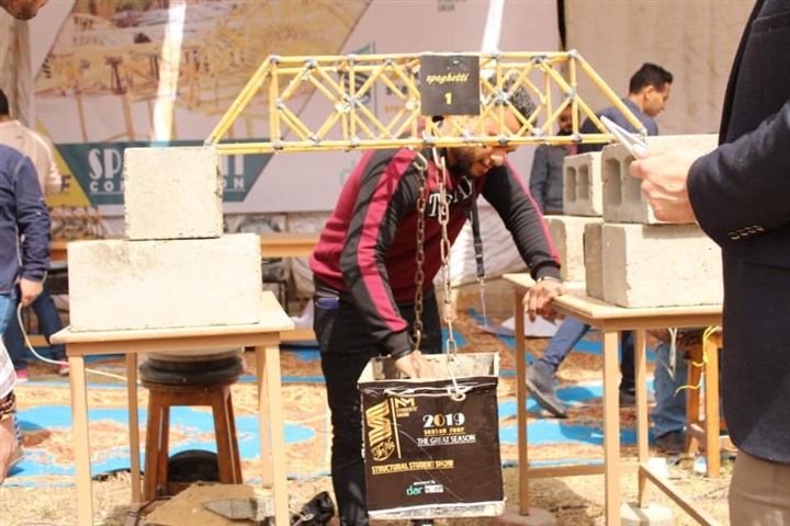مواد ضعيفة (المكرونة الاسباكتى)، ويتكون الفريق من 8 أشخاص (5 من قسم الهندسة المدنية