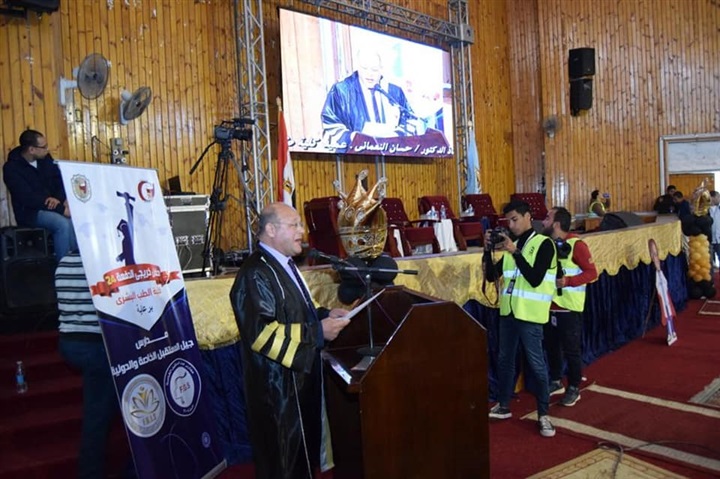 شهد اليوم، الدكتور أحمد عزيز عبد المنعم رئيس جامعة سوهاج، احتفال كلية الطب البشري بتخريج الدفعة رقم ٢٤ والتي أقيمت بقاعة المؤتمرات الكبري بالحرم الجامعي القديم، وبحضور الدكتور صفا محمود السيد نائب رئيس الجامعة لشئون التعليم والطلاب، والدكتور حسان النعماني القائم بأعمال عميد الكلية، والدكتور هانى جميعة وكيل وزارة الصحة، والدكتور محمود فهمي منصور نقيب الأطباء، والدكتور صلاح رشدي، والدكتور أسامة رشاد الشريف وكيلي الكلية لشئون التعليم والطلاب وشئون البيئة وخدمة المجتمع، إلى جانب عمداء ووكلاء الكليات ونخبة من أعضاء هيئة التدريس، وأولياء أمور الخريجين.