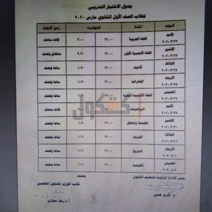 "التعليم" تعلن جدول امتحانات مارس لأولى ثانوي على التابلت