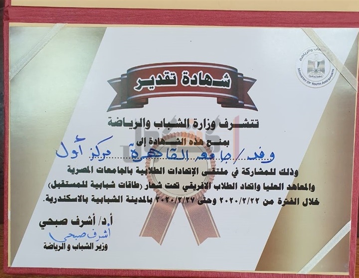 له الأثر في حصول طلابنا على المركز الاول على مستوى 27 جامعة مصرية مشاركة في متلقى