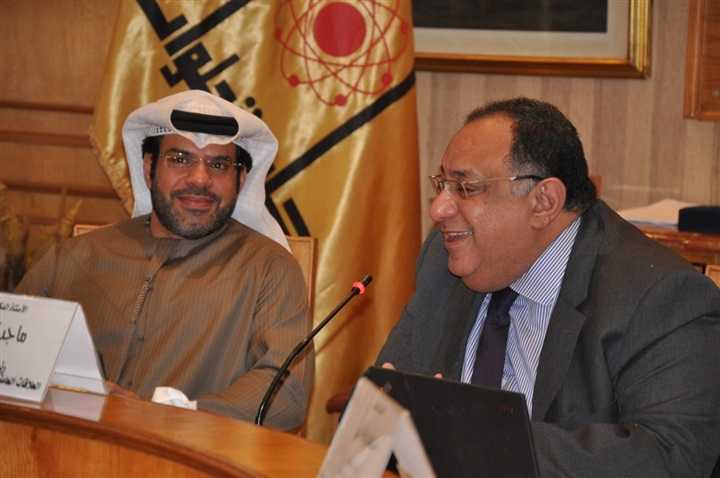 ورحب الدكتور ماجد نجم بالسادة الضيوف من دولة الامارات العربية الشقيقة ثم عرض ملخصا عن جامعة حلوان يتضمن الكليات المختلفة والمراكز البحثية ومكتب التصنيف الدولى والمراكز المتقدمة التي حققتها الجامعة في مجال التصنيف الدولى، بالإضافة إلى التعاون المشترك مع الجامعات المختلفة، والبرامج المتميزة والمتخصصة.
