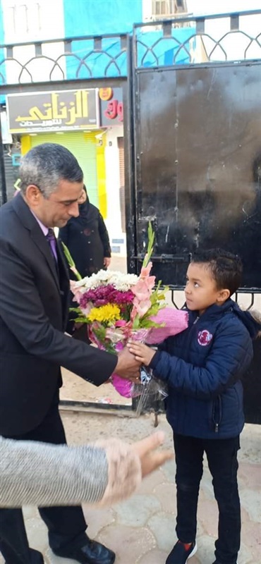 مدرسة تستقبل أحد تلاميذها بالورودعقب تعرضه لحادث مرورى