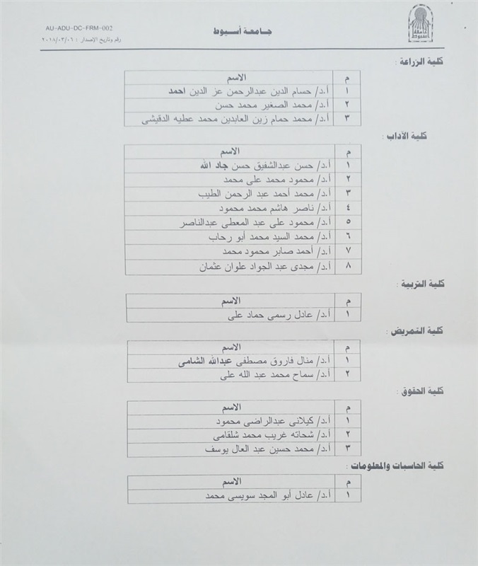 ننشر الكشف النهائي للمتقدمين لعمداء 11 كلية بجامعة أسيوط