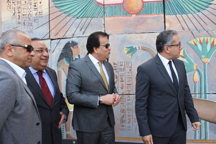 واطلع الوزيران ورئيس جامعة حلوان على الجداريات