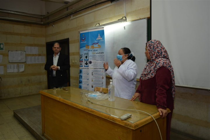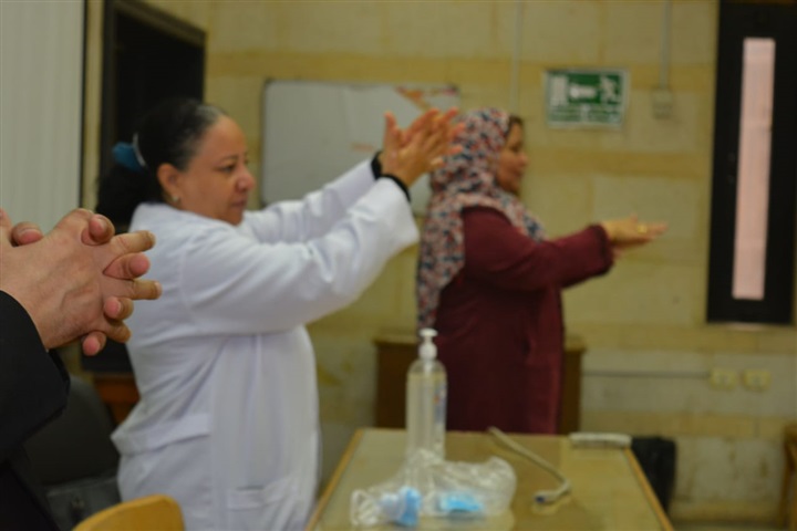 وتم علي هامش الورشة عمل مسح لدرجات الحرارة علي عينة من أعضاء هيئة التدريس والموظفين وطلاب الكلية.