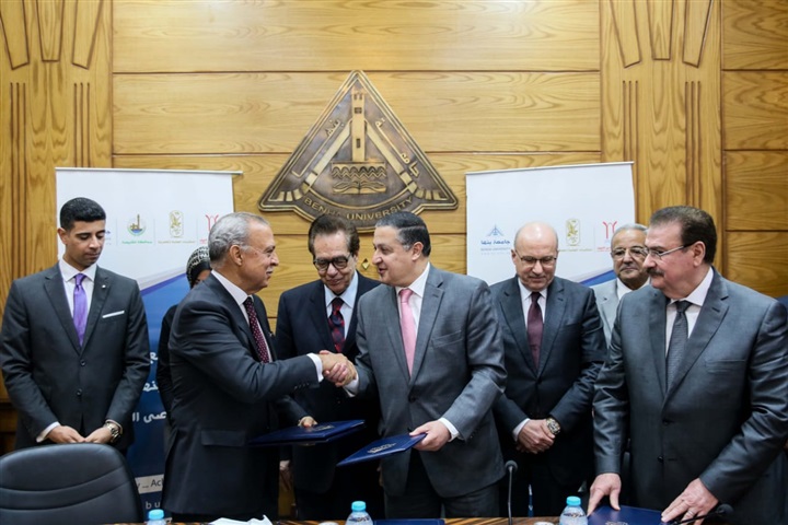 وقع عبد الحميد الهجان محافظ القليوبية، والدكتور جمال السعيد رئيس جامعة بنها، والمهندس هانى ضاحى رئيس مجلس إدارة شركة وادى النيل، عقد مشروع إنشاء وتجهيز مستشفى جامعة بنها التخصصى الجديد.
