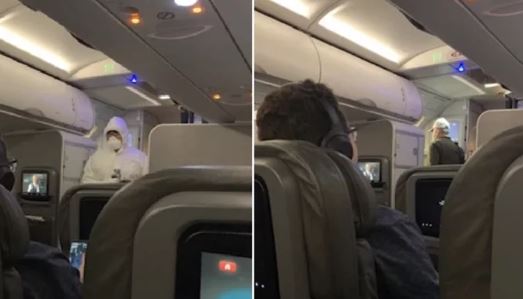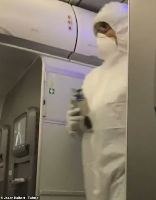 هذه المشكلة كان قد رفض إغلاق طاولة المقعد قبل إقلاع الطائرة، وادعى إصابته بالفيروس.