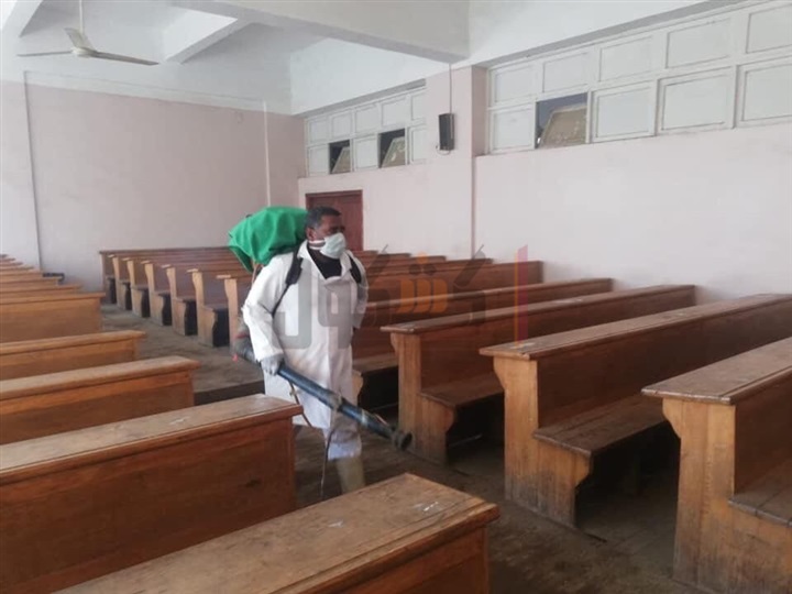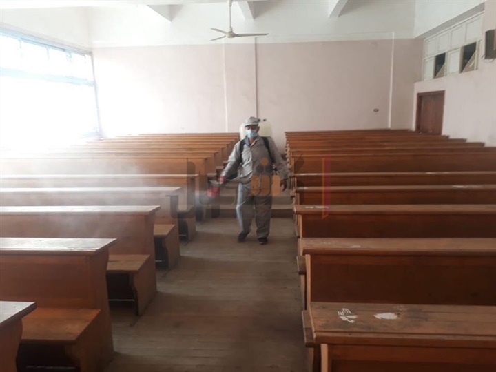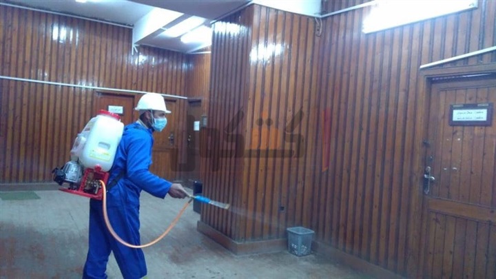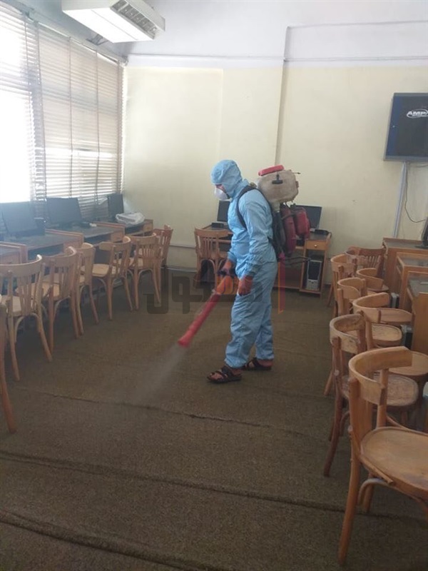 تنفيذ أعمال تطهير وتعقيم للمنشأت والمباني بجامعة الزقازيق