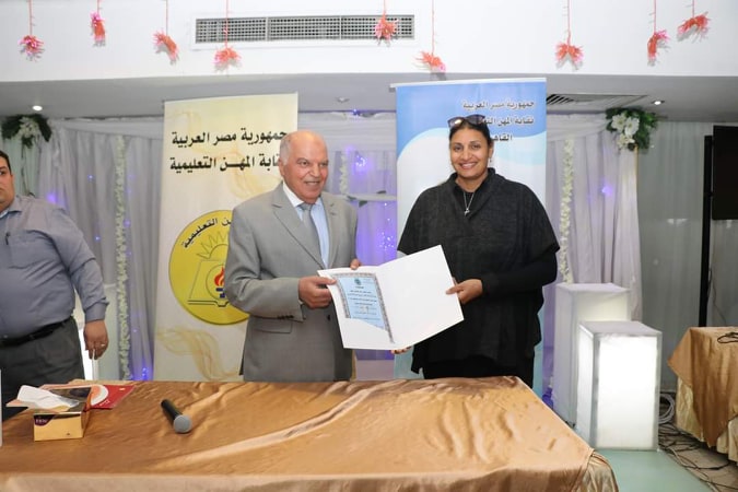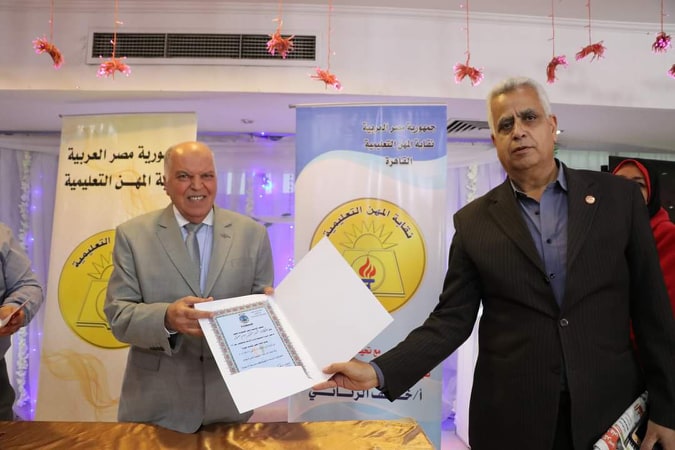 سلم خلف الزناتي نقيب المعلمين ورئيس اتحاد المعلمين العرب، شهادات إتمام الدورة التثقيفية في التفاوض وإدارة الأزمات لـ 200 معلم ومعلمة، والتى نظمتها أكاديمية ناصر العسكرية، متمنين لهم مزيد من التفوق والنجاح.
