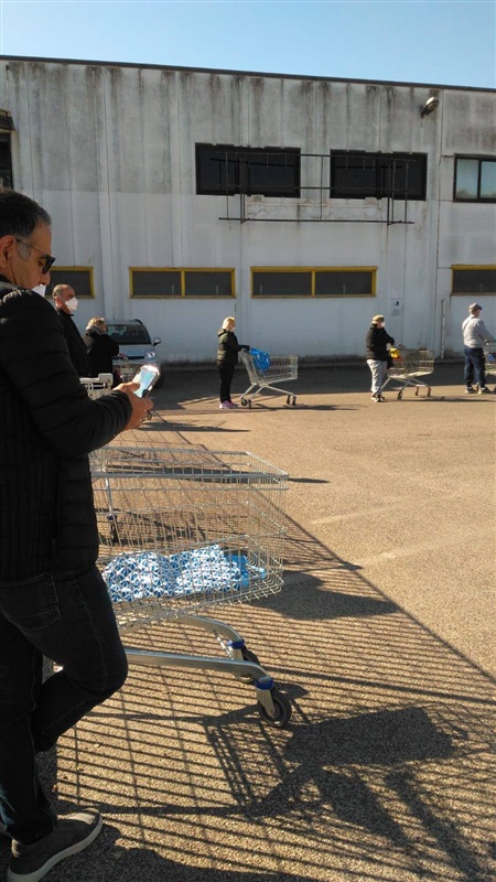 إحتياجات المواطن الأساسية يتم توفيرها بكل سلاسة وسهولة ومتواجدة في السوبرماركت بوفرة دون نقص في أي سلعة، ولن يكون هناك إطلاقا في رفع الأسعار، لأن الشعب الإيطالي بدء يدرك حجم الأزمة وضرورة التكاتف من أجل عبورها بأقل الخسائر، ثانيا لرقابة الحكومة الشديدة على الأسواق، كل شئ مثل ما كان قبل وقت الحظر، لكن الشيء الجديد هو فرض قانون لابد من تنفيذه عند النزول للتسوق، وهو عمل طابور طويل خارج السوبر ماركت وتكون المسافة هي متر بين الشخص والآخر ودخول فرد عند خروج فرد آخر.