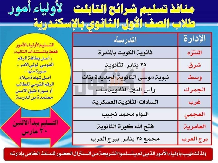 ننشر منافذ تسليم شرائح التابلت لطلاب أولى ثانوي بالإسكندرية