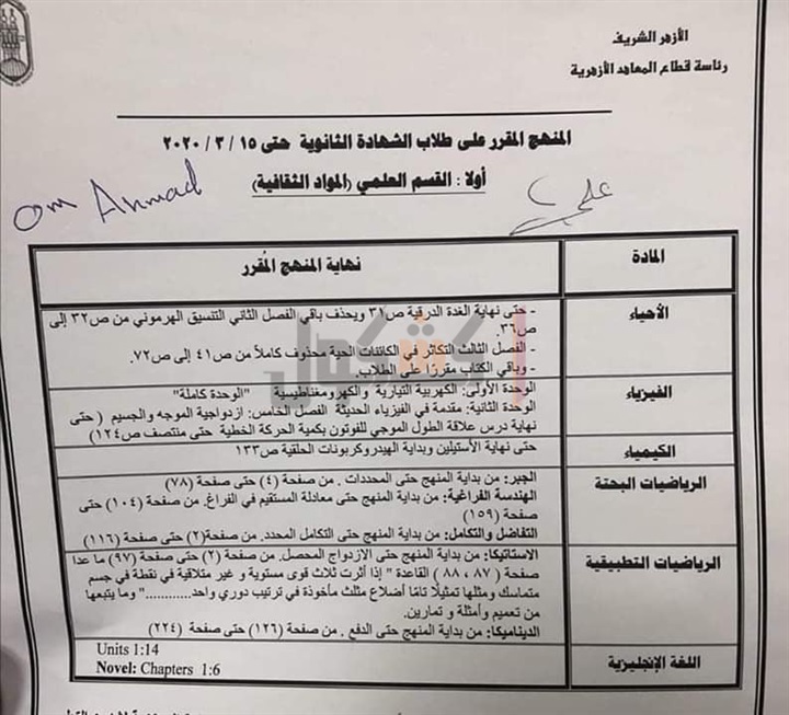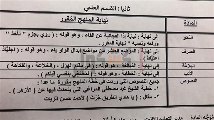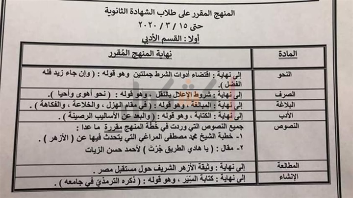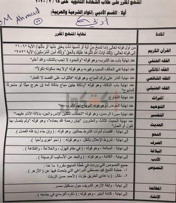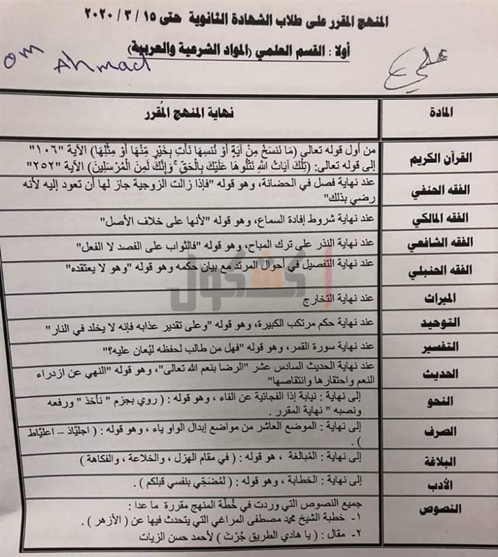 ننشر الموضوعات المحذوفة والمقررة لطلاب الثانوية الأزهرية