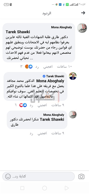 ومن جانبه علق الدكتور طارق شوقي، بأن الدكتور محمد مجاهد نائبه، يعمل مع فريقة على هذا، علمآ بالتنوع الكثير في تخصصات التعليم الفني، قائلآ "سوف نوافيكم بالتفاصيل عند اكتمالها ان شاء لله".