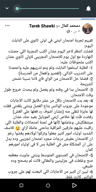روى الدكتور محمد كمال أستاذ فلسفة الأخلاق، بجامعة كفر الشيخ تقييمه لتجربة امتحان ابنته في أولى ثانوي على التابلت أمس.