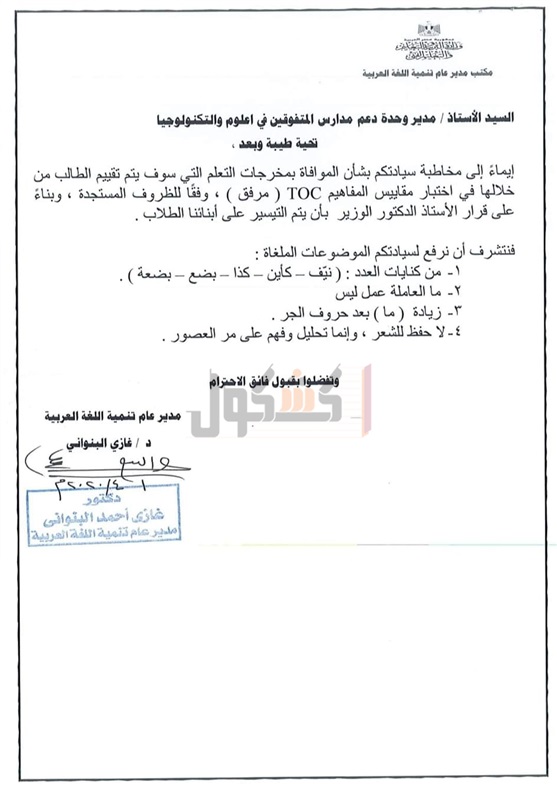 وسيتم نشر هذه المخرجات من خلال وحدة مدارس المتفوقين، وعلى الموقع الرسمي لوزارة التربية والتعليم والتعليم الفني: أضغط هنا.