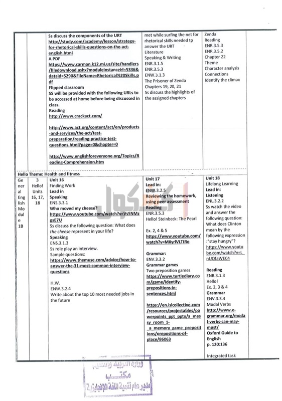 التعلم التي تم دراستها في الصفين الأول والثاني الثانوي (Inventory) ذات الارتباط الوثيق