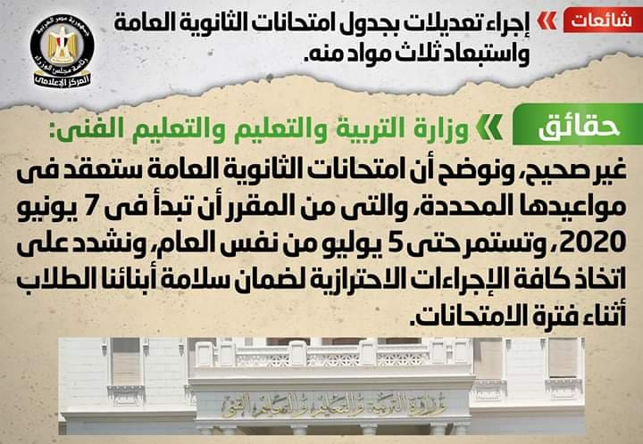 والتعليم والتعليم الفني ذلك, موضحه أن امتحانات الثانوية العامة ستعقد في