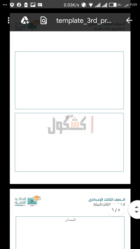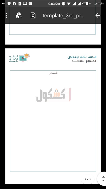 يستعد طلاب الصف الثاني الإعدادي لبدء تنفيذ عمل المشروعات البحثية المطلوبة منهم، كبديل لامتحانات نهاية العام الدراسي، ولذلك يستعرض لكم "كشكول" نموذج لقالب المشروع البحثي عن البيئة لطلاب الصف الثاني الإعدادي.