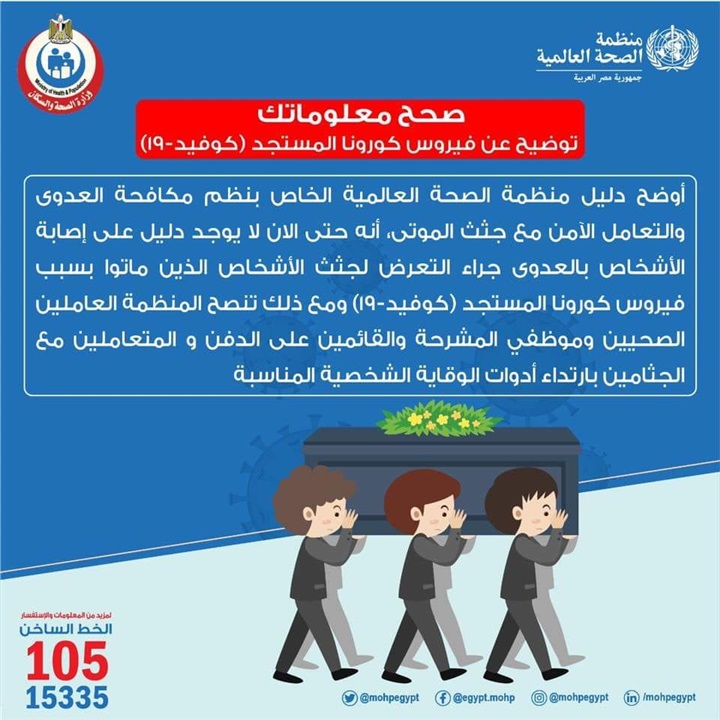 الصحة العالمية الخاص بنظام مكافحة العدوى والتعامل الأمن مع جثامين الموتي، أوضح أنه