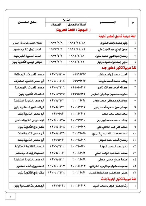 ننشر كشوف المقبولين والمستبعدين من الإعارة بالبحيرة