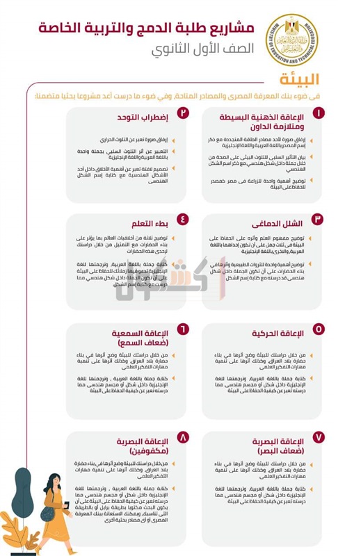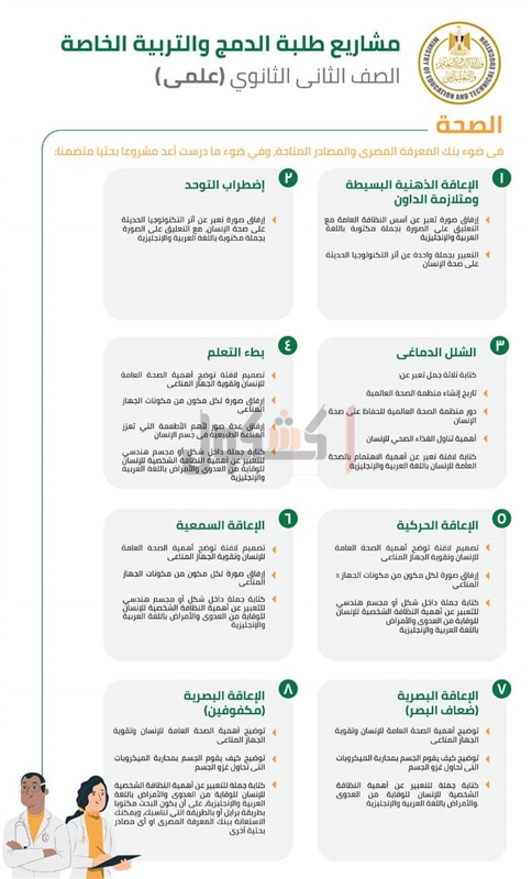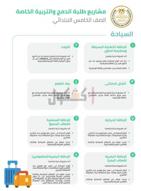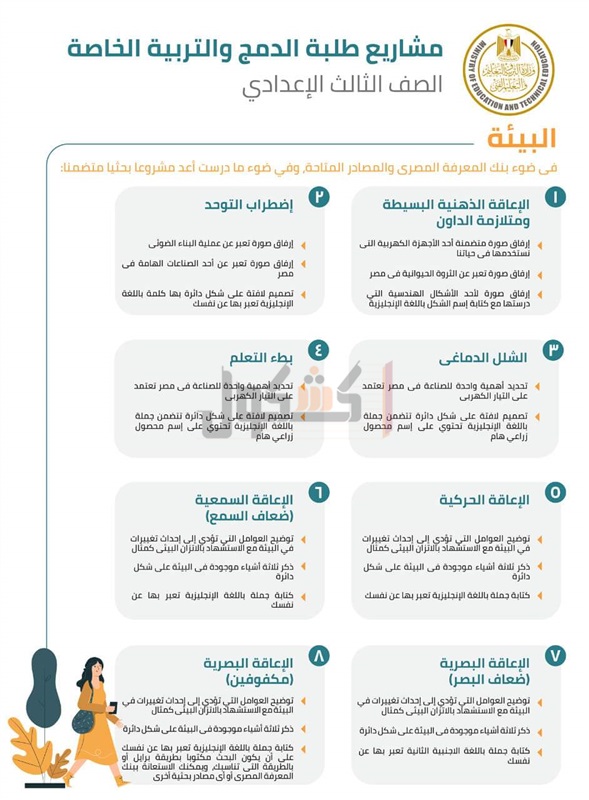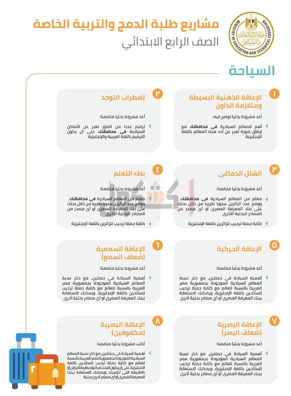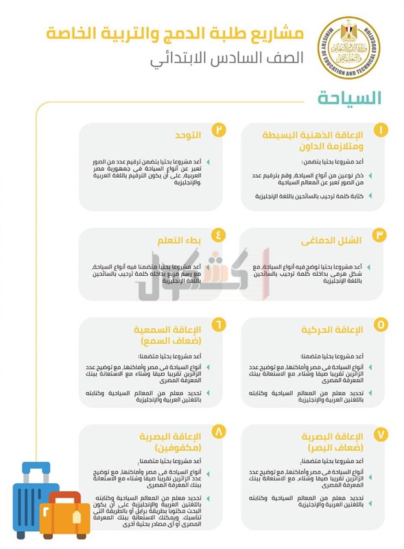 أعلن الدكتور طارق شوقي، وزير التربية والتعليم والتعليم الفني، عرض كامل لمواضيع المشاريع البحثية المقررة على طلاب الدمج والتربية الخاصة من الصف الثالث الإبتدائي وحتى الصف الثاني الثانوي.
