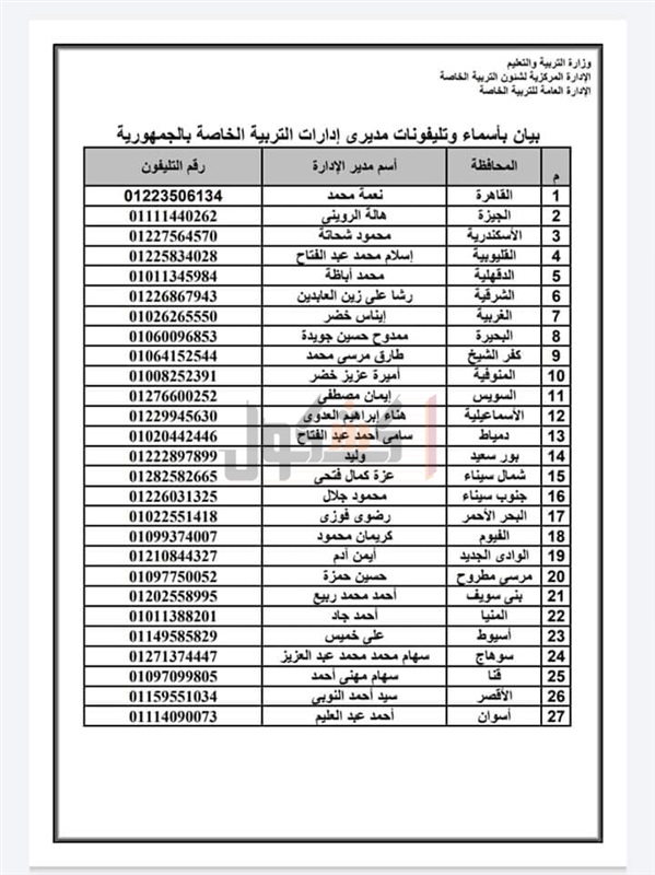 وخصصت الوزارة، أرقاما للاستفسار بكل محافظة، وجاءت كالتالي: