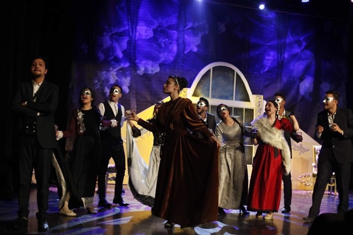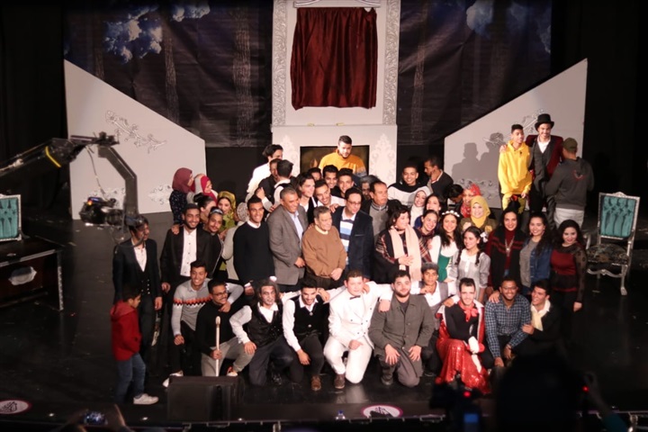 كلا من الطالب عبدالله عبدالغني على جائزة لجنة التحكيم الخاصه عن دوره فى مسرحية اللوحة.