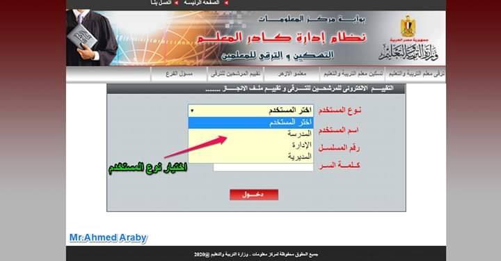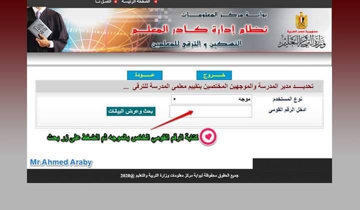 ويمكن للمعلمين المرشحين للترقي التسجيل علي الرابط التالي :