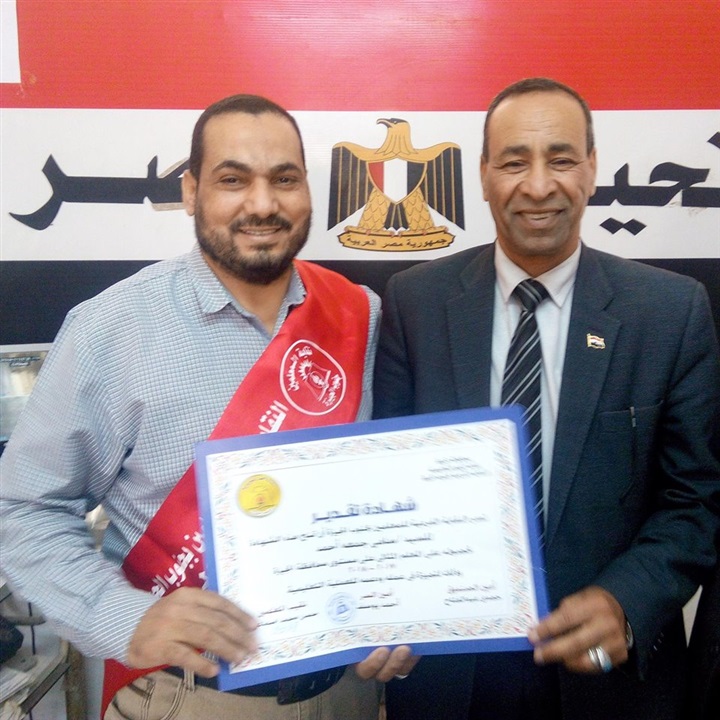 كرم أحمد مبارك المحفوظى مدير عام ادارة الصف التعليمية سامى جمعة منصور، بمناسبة حصوله على جائزة المعلم المثالى على مستوى محافظة الجيزة .