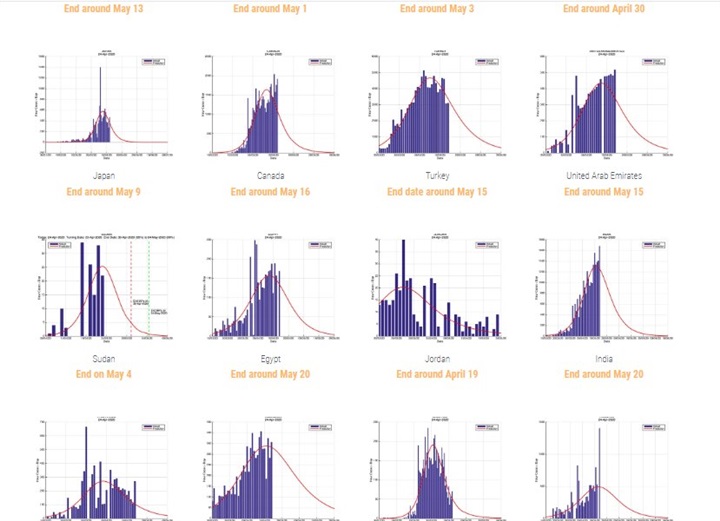 وتضيف أن أزمة وباء كورونا ستنتهي في مصر في 20 مايو، وفي السودان في الرابع من الشهر ذاته، وفي السعودية ستصل لذروتها في الأول من مايو على أن تنتهي مطلع يونيو.