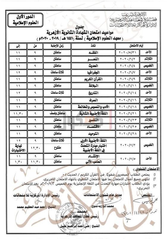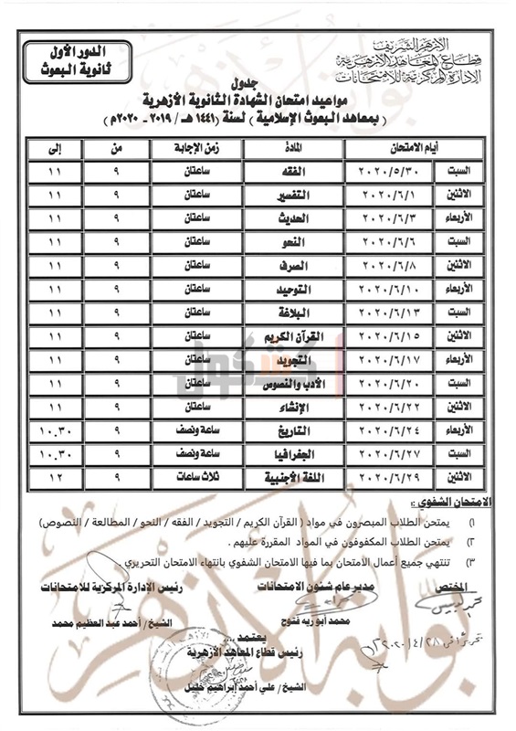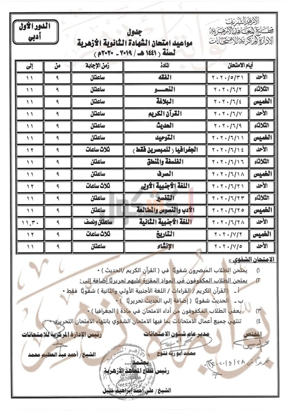 تعديلات جداول امتحانات الشهادة الثانوية الأزهرية "صور"
