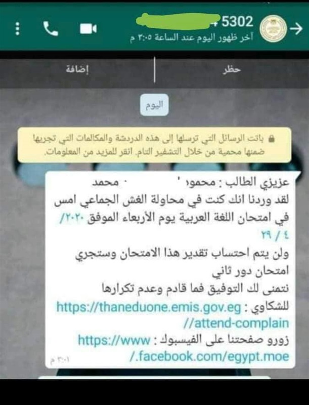 قالت وزارة التربية والتعليم والتعليم الفني، إنه لا صحة للرسالة المتداولة عن قيام أحد الطلاب بمحاولة الغش الجماعي لامتحان اللغة العربية، وأنه لن يتم احتساب تقدير هذا الامتحان، وسيجري الطالب امتحان دور ثاني.