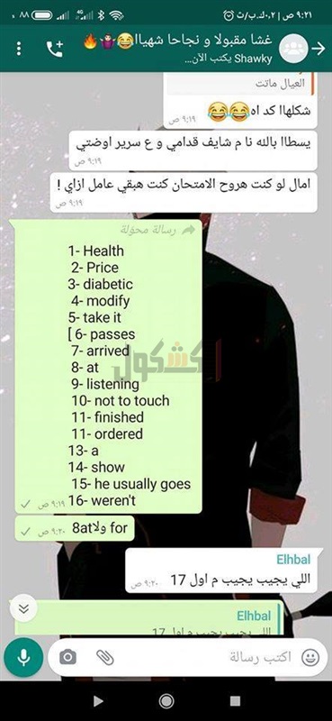 بدأ عدد من طلاب الصف الثاني الثانوي, في حل امتحان اللغة الأجنبية الأولى بشكل جماعي عبر أحد مجموعات موقع التواصل الاجتماعي" الواتس أب".