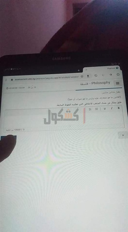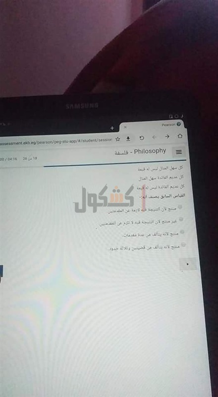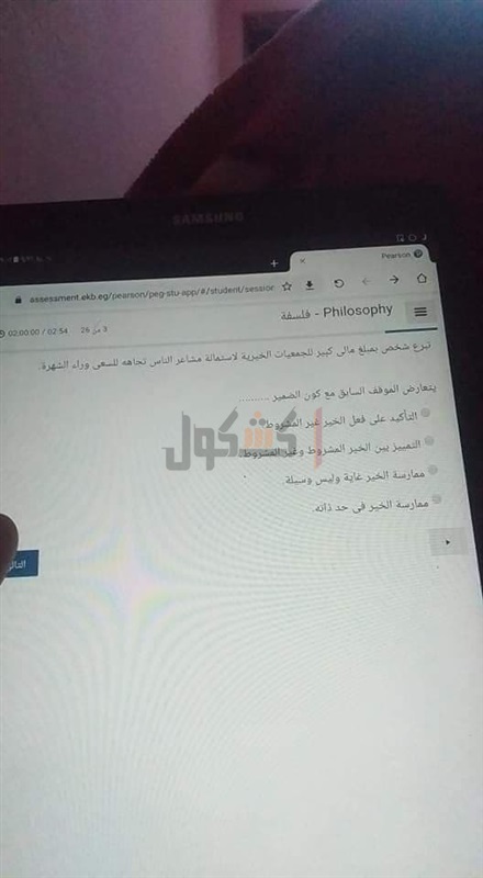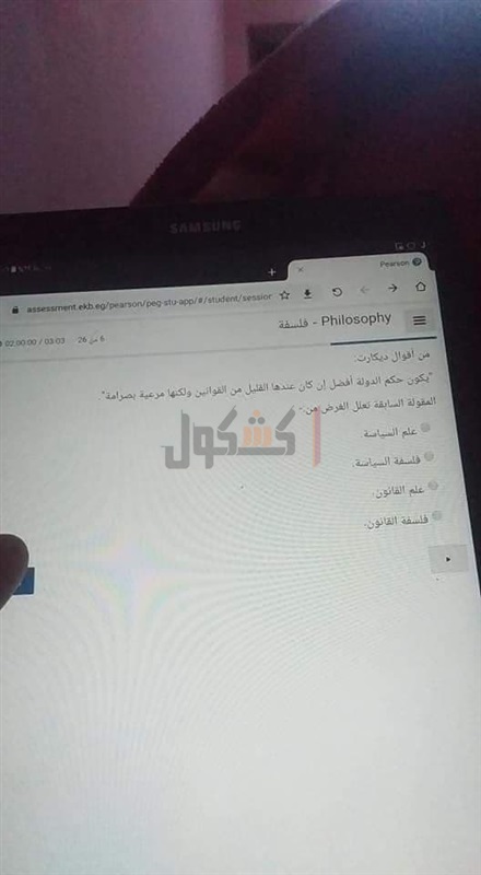 تداول طلاب صور لامتحان الفلسفة والمنطق لطلاب الصف الثاني الثانوي بعد مرور 45 دقيقه من بدء الامتحان عبر أحد الجروبات التعليمية الخاصه بهم بمواقع التواصل الاجتماعي" الفيس بوك"، حيث نشر أحد الطلاب الامتحان مطالبا إجابته.