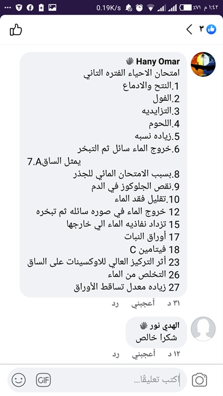 حيث كتب أحد الطلاب" إجابة امتحان الأحياء كامل اهو".