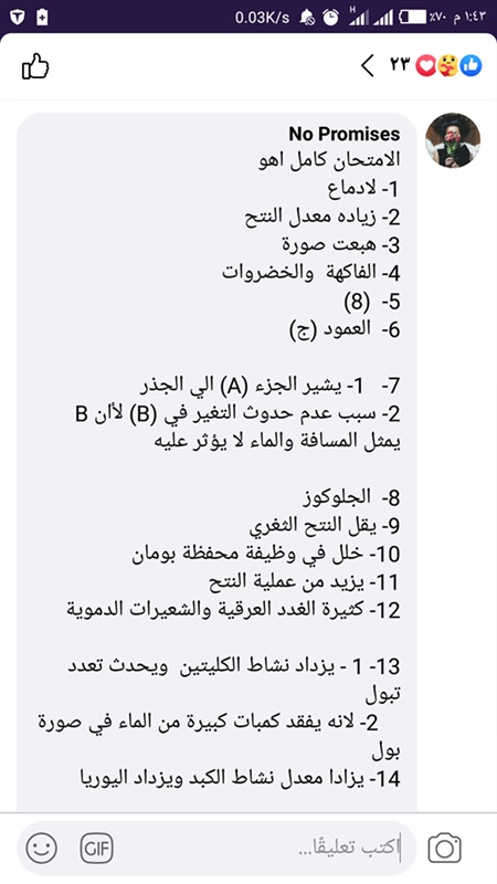 تداول عدد من طلاب الصف الثاني الثاني اجابات أسئلة امتحان الأحياء عبر مجموعات موقع التواصل الاجتماعي" فيس بوك".