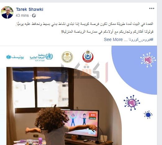 قال الدكتور طارق شوقي وزير التربية والتعليم والتعليم الفني، عبر منشور بموقع التواصل "فيسبوك": إن القعدة في البيت لمدة طويلة ممكن تكون فرصة كويسة إننا نبتدي نشاط بدني بسيط ونحافظ عليه يوميًا.