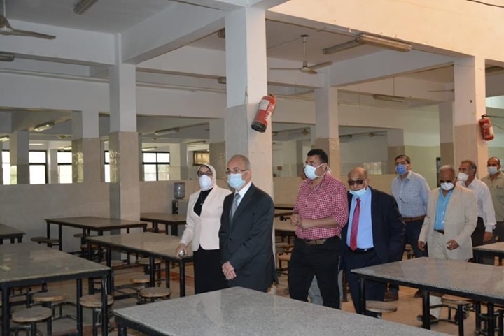 رافقه بالجولة الدكتورة ميرفت عسكر نائب رئيس الجامعة لشئون الدراسات العليا والبحوث، والدكتور عبدالمنعم نافع المشرف علي قطاع التعليم والطلاب، والدكتور رمضان نافع مستشار رئيس الجامعة لشئون الوقاية ومكافحة العدوى، والدكتور أحمد عبدالستار أمين عام الجامعة، والدكتور وليد ندا المدير التنفيذي للمستشفيات الجامعية، ومدير عام المدن الجامعية.