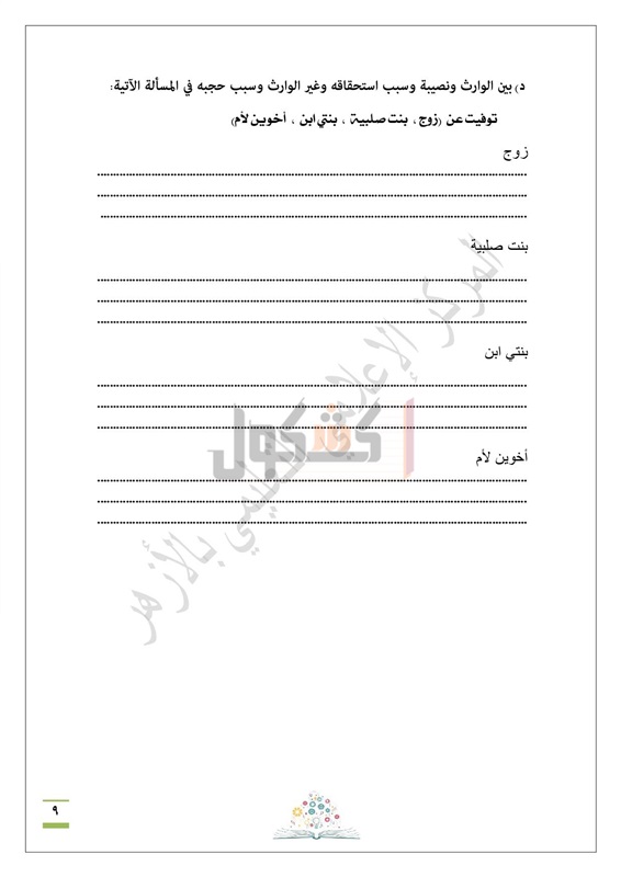 الشافعى للقسم العلمى بالسؤال الرابع من المادة والمختص بجزء المواريث فى 3 نقاط