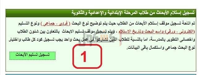 والتعليم الفني، أتاحت تسجيل استلام الأبحاث من طلاب المرحلة الإبتدائية والإعدادية