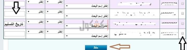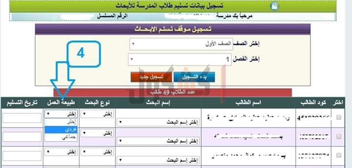 اما بالنسبة للطلاب الذين تشاركوا فى عمل بحث واحد يجب تسجيل كود كل طالب واختيار نوع